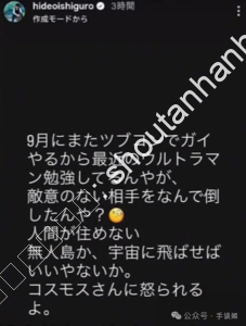 “因为9月份圆谷祭要演‘红凯’,所以在补新奥,不过为什么要打倒没有敌意的对手呢?找个没人的荒岛、或者干脆送它去宇宙不行吗?杀死它高斯会生气的啊。”